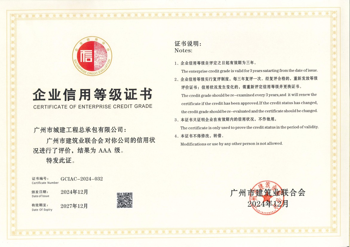 近日,廣州市建筑業(yè)聯(lián)合舉辦“誠信企業(yè)”評選活動,對企業(yè)依法納稅、合同履約、安全生產(chǎn)、社會誠信等管理工作進行考察評定。公司積極申報,經(jīng)評審委員會評定、向社會公示等程序,成功復(fù)評為廣州市建筑業(yè)聯(lián)合會AAA級誠信企業(yè),成為50家達標企業(yè)之一。