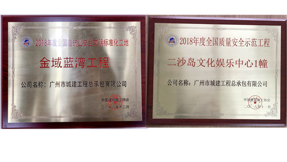 公司榮獲由中國(guó)建筑施工協(xié)會(huì)頒發(fā)的兩項(xiàng)全國(guó)性質(zhì)量安全獎(jiǎng)“2018年度全國(guó)質(zhì)量安全示范工程”與“2018年度全國(guó)建筑業(yè)安全文明標(biāo)準(zhǔn)化工地”。  一直以來(lái),公司不斷加強(qiáng)安全文明管理力度,努力提高生產(chǎn)水平,并成立專(zhuān)門(mén)的督導(dǎo)組...