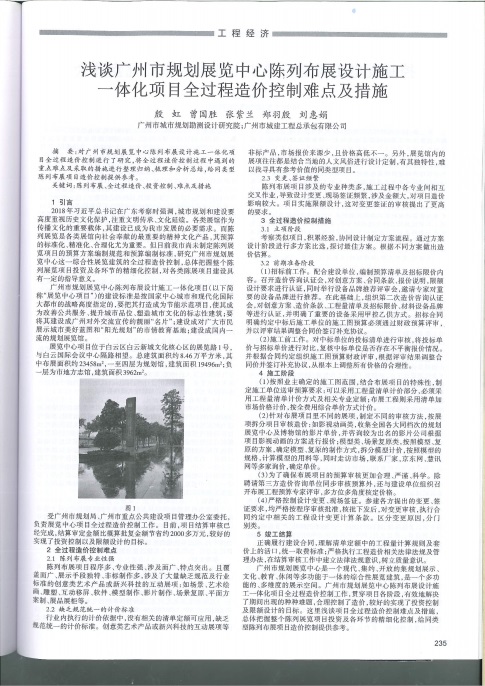 公司對廣州市規(guī)劃展覽中心陳列布展設(shè)計施工一體化項目全過程造價控制進(jìn)行了研究,將全過程造價控制過程中遇到的重點難點及采取的措施進(jìn)行整理歸納、梳理和分析總結(jié),給同類型陳列布展項目造價控制提供參考。